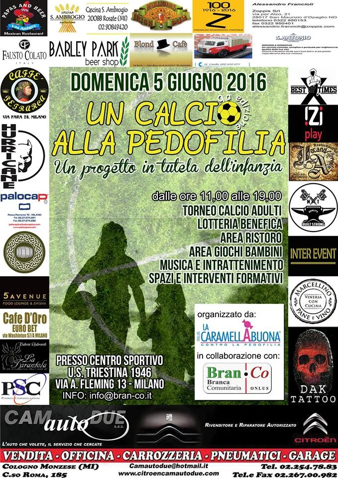 Le parole di Parisi degli ultimi giorni, di presa di distanza dalla candidatura di Pavesi nella sua coalizione, sono state evidentemente di mera circostanza, poiché in questi giorni si sono addirittura moltiplicati i banchetti della Lega con la presenza di militanti e materiale di propaganda di “Lealtà e Azione”. E quindi c’è da aspettarsi chel’evento “Un calcio alla pedofilia”, piazzato non a caso proprio il giorno del voto, avrà un marcato carattere politico ed elettorale.