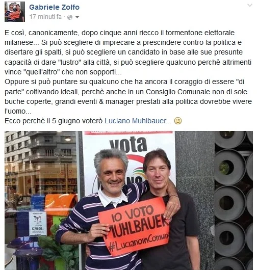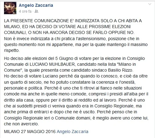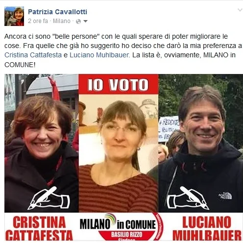 Eccovi la seconda parte della raccolta di dichiarazioni di voto a favore della lista Milano in Comune e della preferenza a Luciano Muhlbauer, che ci sono pervenute su facebook o per mezzo di video. La prima parte è stata pubblicata qui. Nei prossimi giorni seguiranno le altre parti.