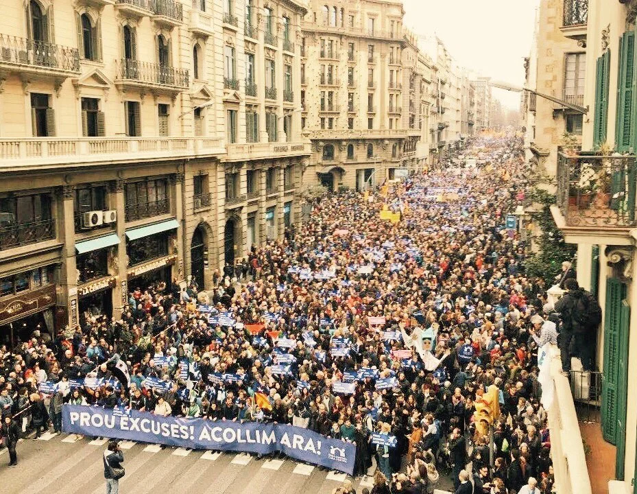 Barcellona, 18 febbraio 2017, oltre 150mila partecipano alla manifestazione per l'accoglienza e contro i respingimenti, Nessuno è illegale